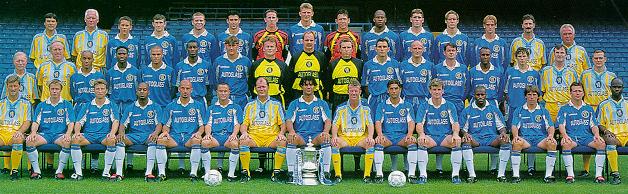 Star players (from left to right): Graeme Le Saux (2rd-1st row), Gianiuca Vialli (5th-1st row), Roberto DiMatteo (10th-1st row), Gianfranco Zola (13th-1st row), Frank Leboeuf (12th-2rd row)